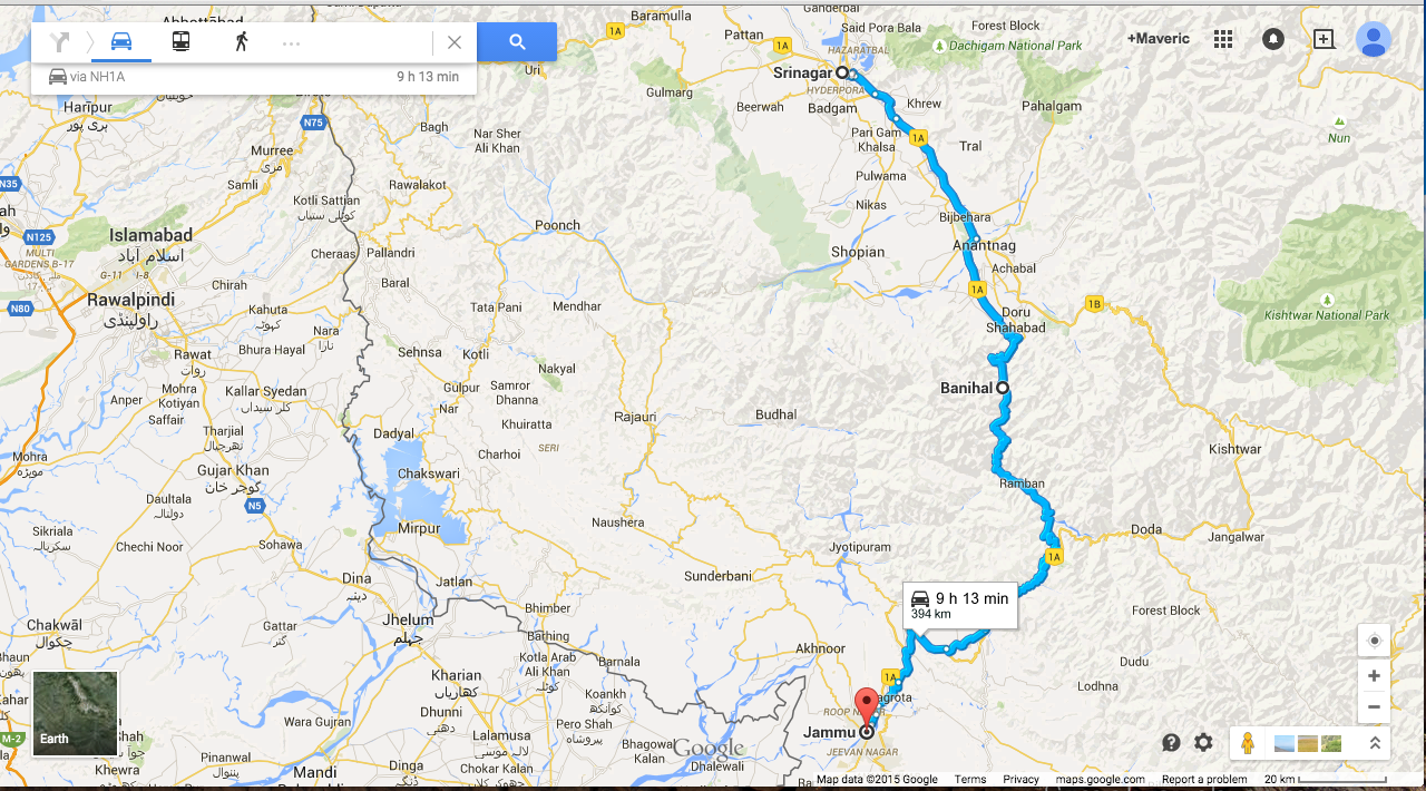 Route Map : Srinagar-Banihal, Jammu & Kashmir, India![]()